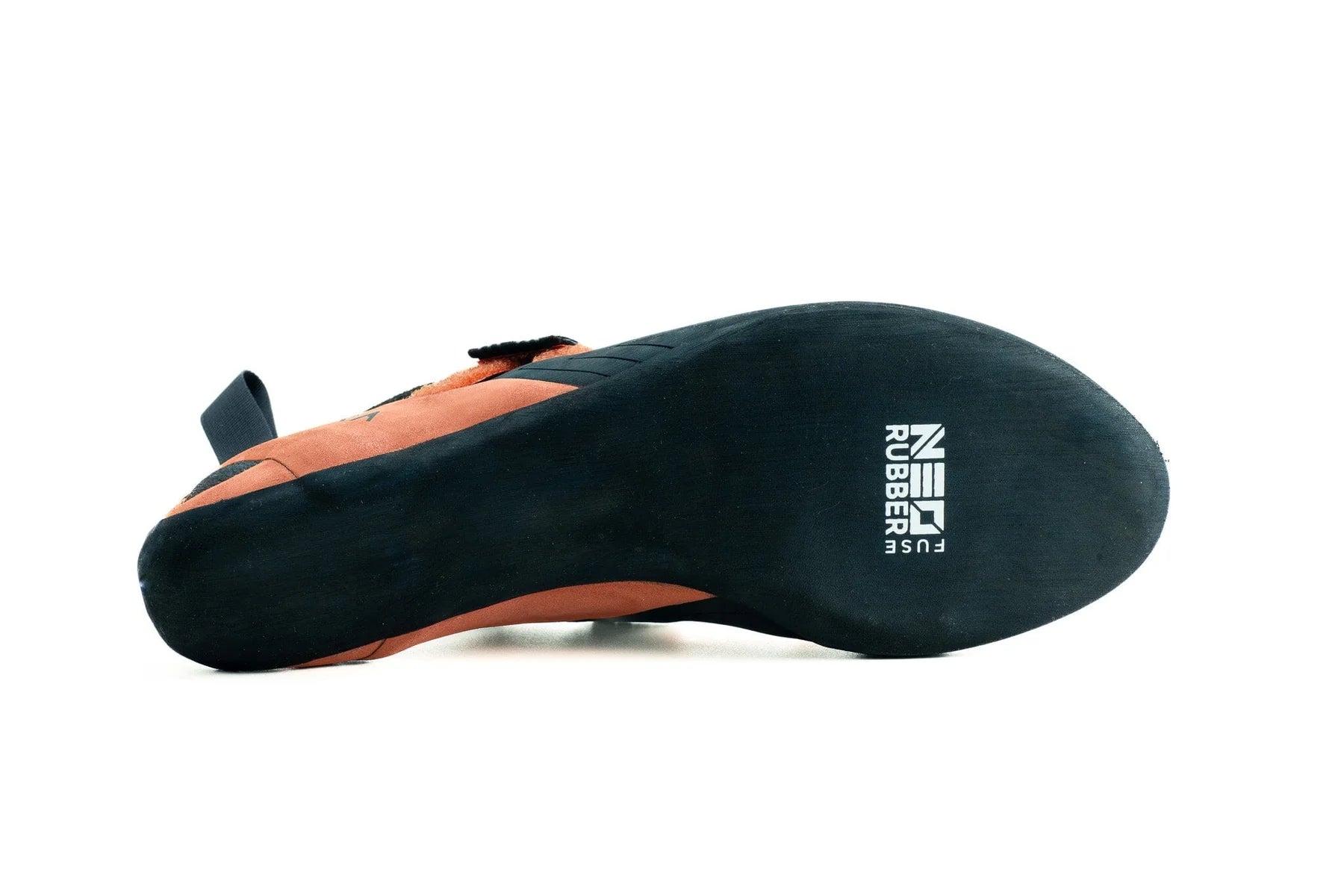 If you need a shoe that offers performance with comfort regardless of the terrain, this is the shoe for you. The Endeavor provides precision exactly where you want it. The slightly asymmetrical toe shape comfortably follows the natural line of the foot, and, coupled with the innovative triple fork webbing system for custom fitting, the Endeavor will be exactly what you need in a great all-around climbing shoe.